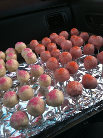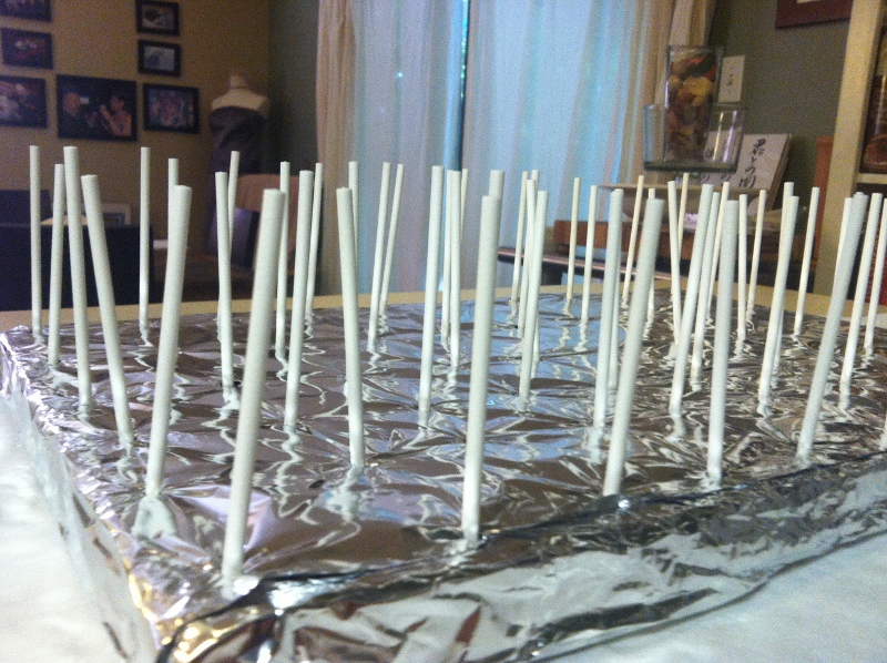 Step 13: Coat balls with melted candy. swirl and tap. Like my Bare Minerals makeup? Yes, I guess. That seems foolish. It doesn’t even look like you have makeup on. I don’t. Then shut the fuck up. Place popballs on foam board to dry. PUT IN REFRIGERATOR.