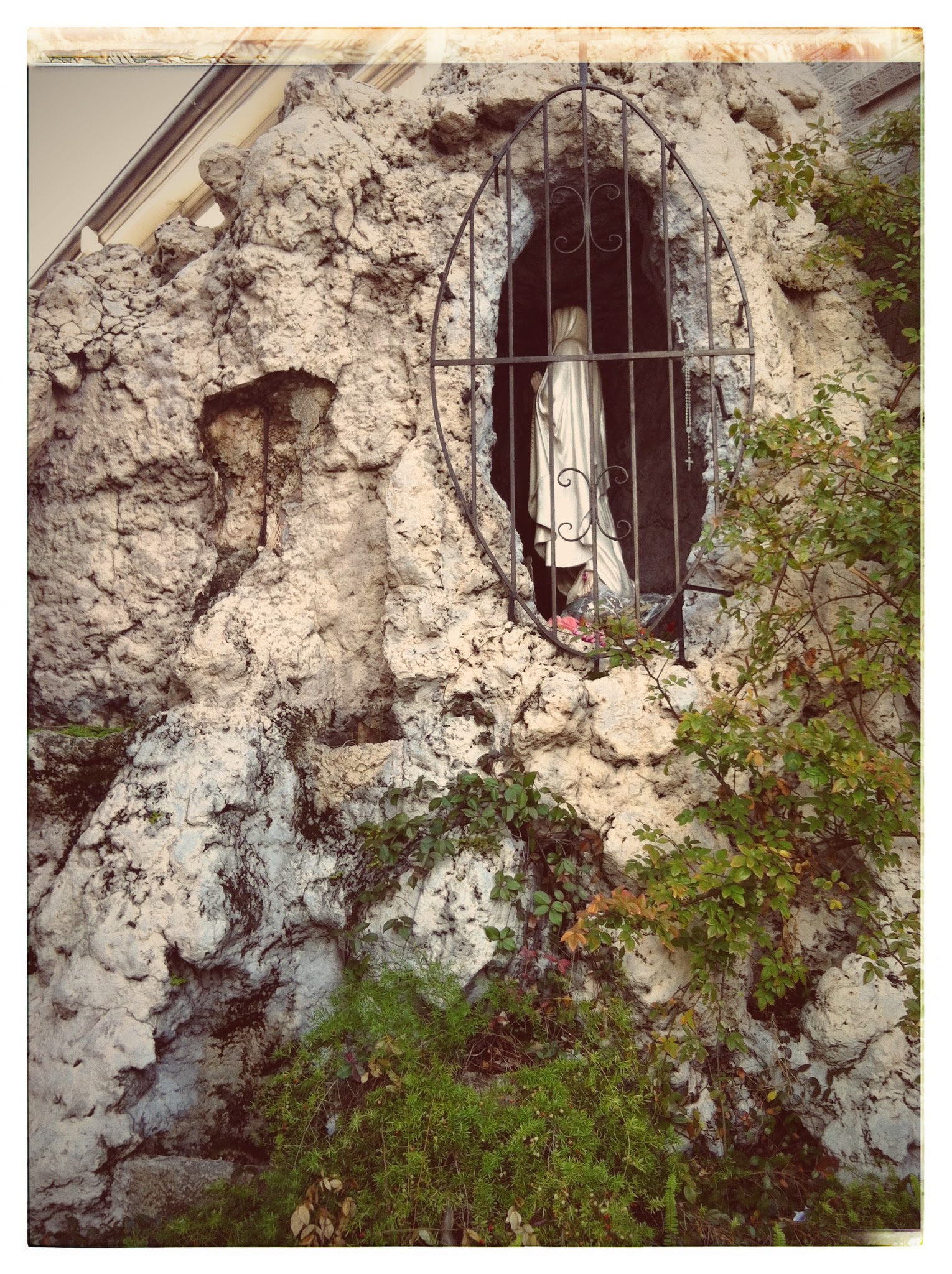 I’m not a Christian, but I’m filled with reverence for the dead in this city. Being among the graves in St. Louis # 1 fills me with not only the sense of “damn I best gather these rosebuds right the fuck now” but also with a stillness and a longing to know more, to learn all I can about the people who have lived here and made New Orleans what it is. When I visit the small church that is next to the cemetery, it’s perfect and new to me every time I go. The mosaics, the grotto, the room that is heated with a thousand silent prayers on the wicks of candles – it is gorgeous, it is tragedy, it is human.